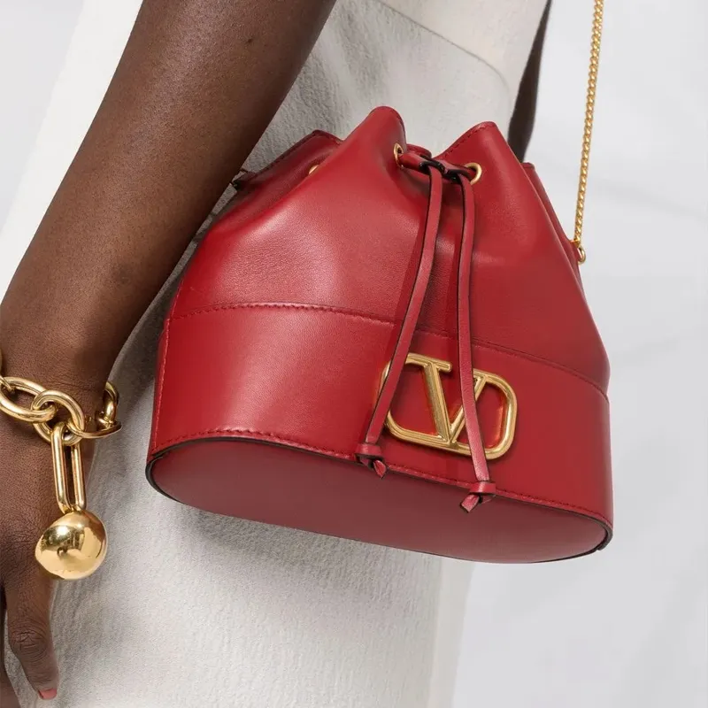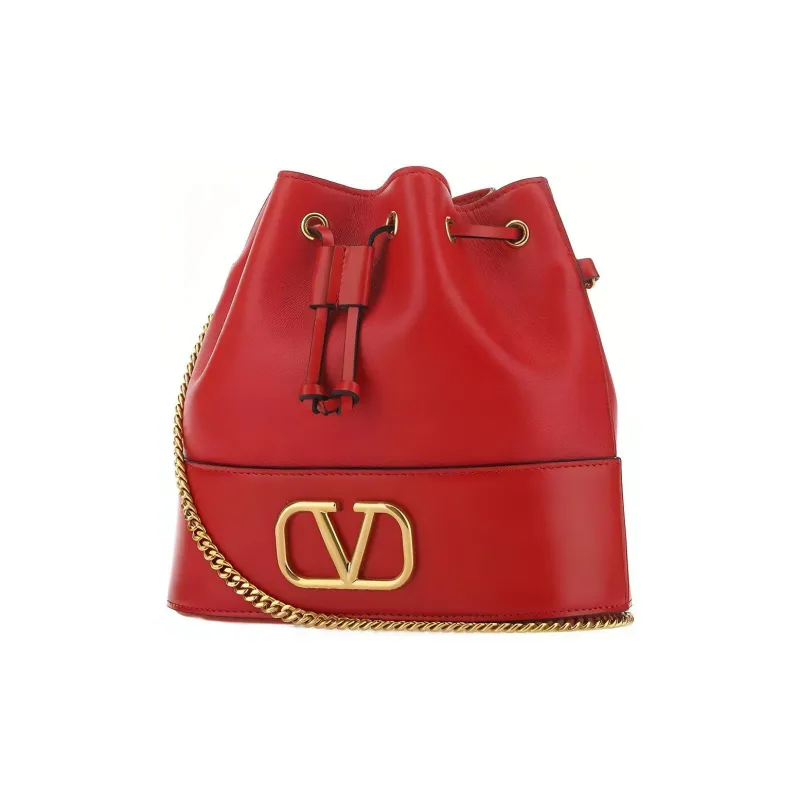 Valentino Vlogo Lambskin Bucket Bag Crossbody Bag Women's Red