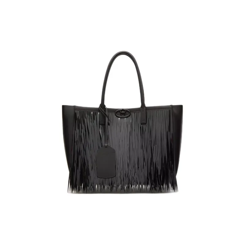 Valentino Vlogo Кожа Тоут Сумка Сумка для покупок Сумка Сумка через плечо Средняя Женская Черная