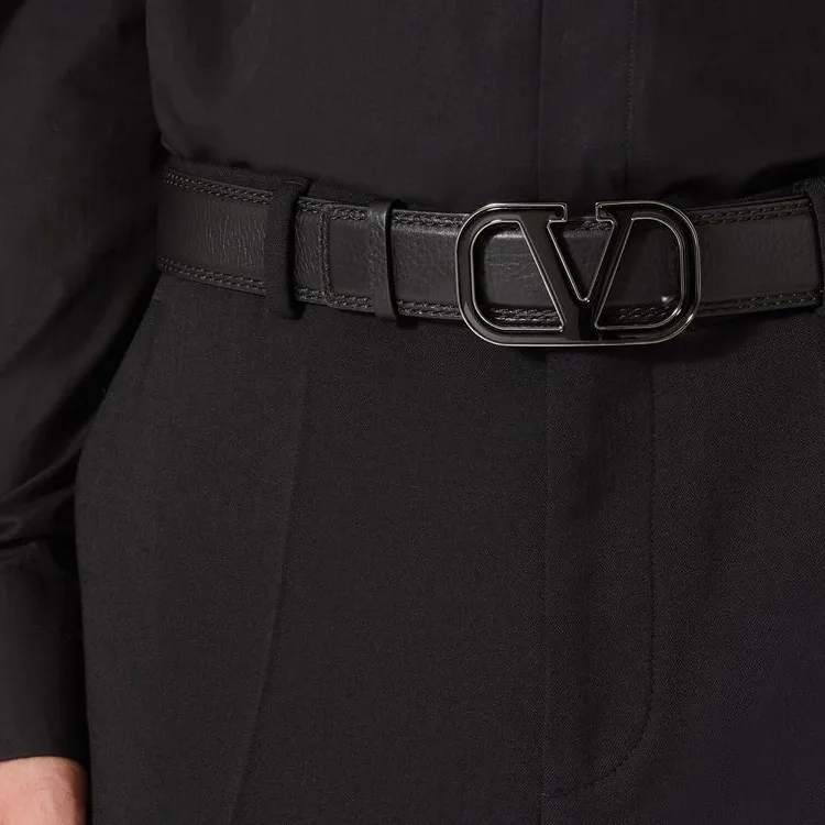 Valentino Vlogo Логотип плавная застежка кожаные ремни мужской черный