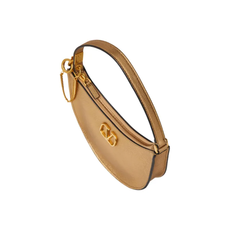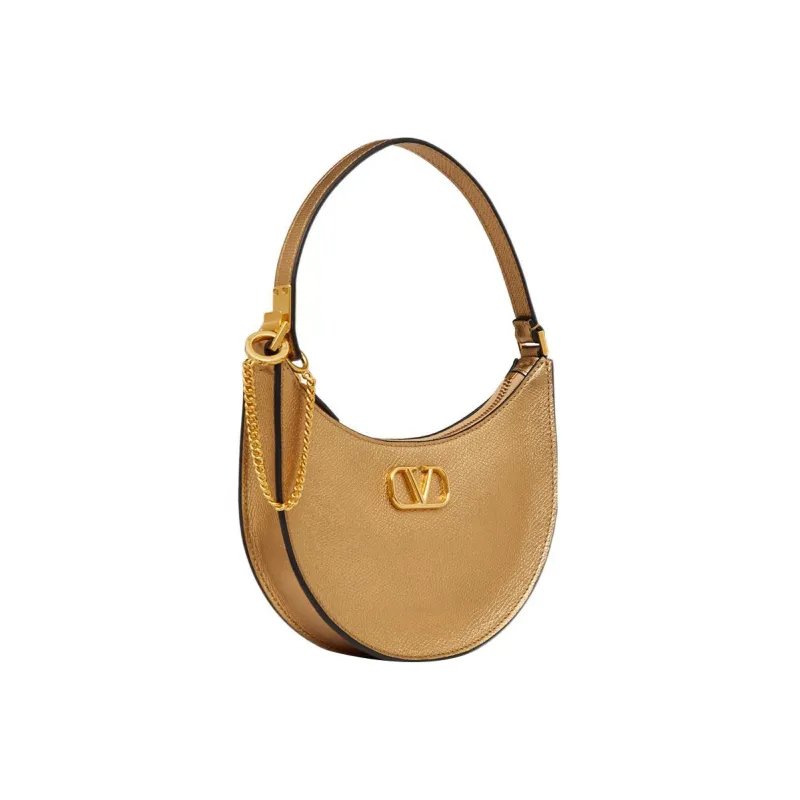 Valentino Vlogo Блестящая Телячья Кожа Хобо Сумка Сумка Сумка через плечо Мини Женская Золотая