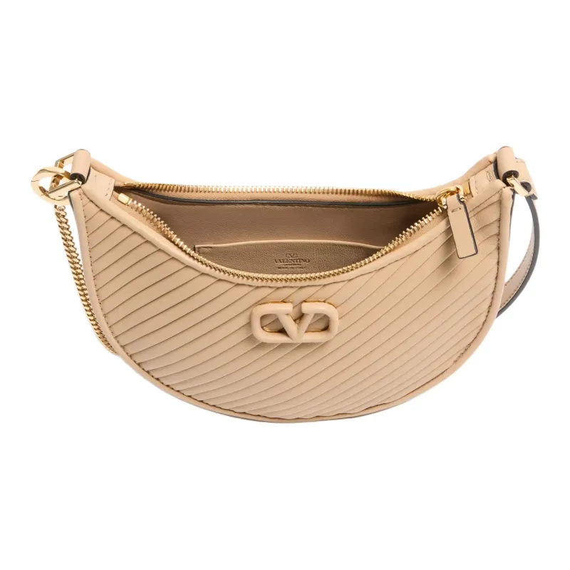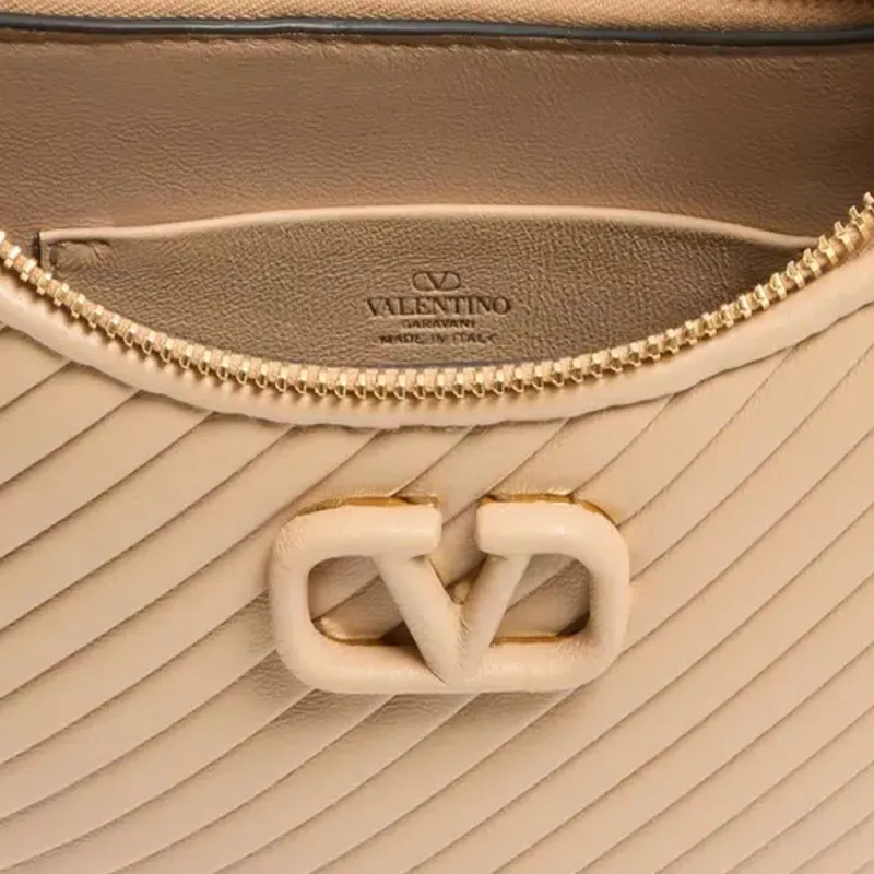 Valentino Vlogo Signature Кожа Хобо Сумка Сумка через плечо Мини Женская Песочный