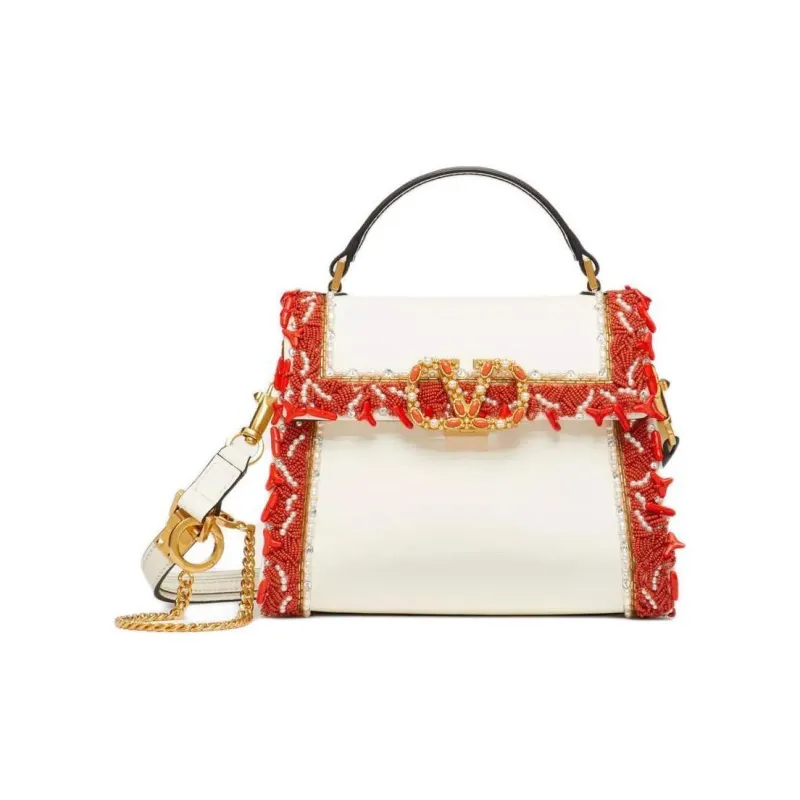 Valentino VSLINGGARAVANI Напп Кожа Сумка через плечо Мини Сумка Женская Коралловая