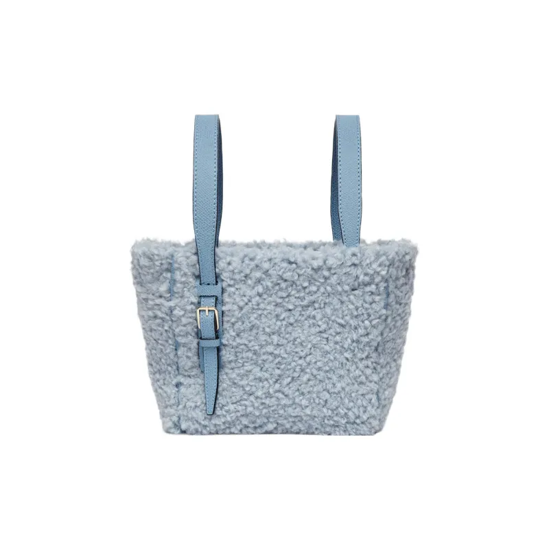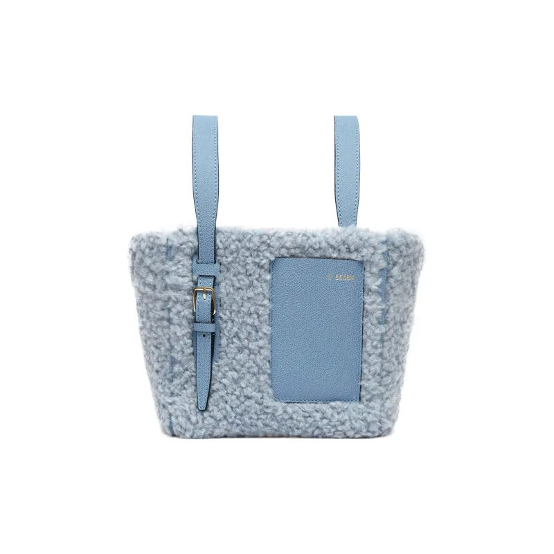 Valextra Кудрявый Кожа с Телячья кожа Ведрообразная Сумка Тоут Сумка Сумка для покупок Сумка Мини Женская Синяя