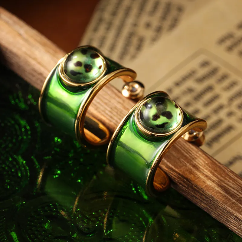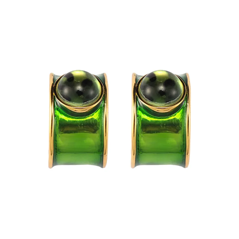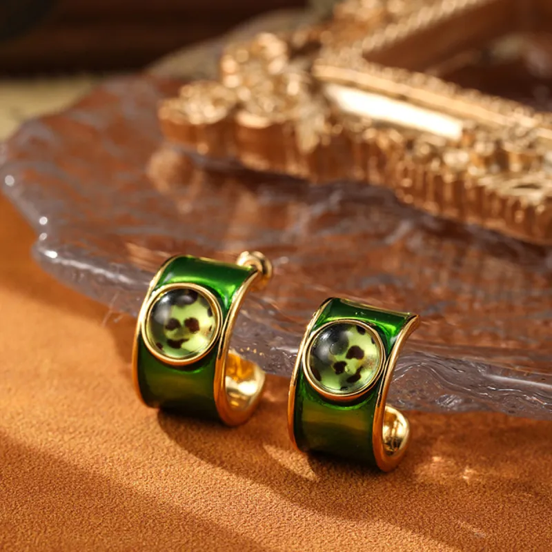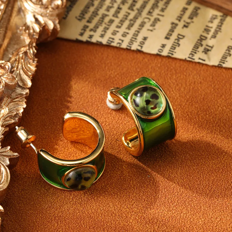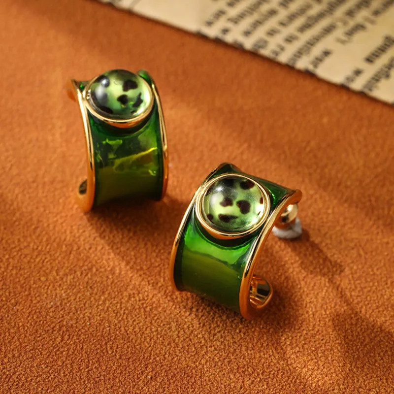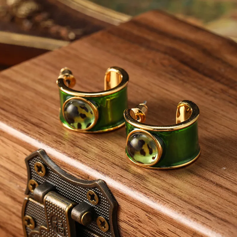 Стиль:Серьги в форме буквы "C" зеленого цвета