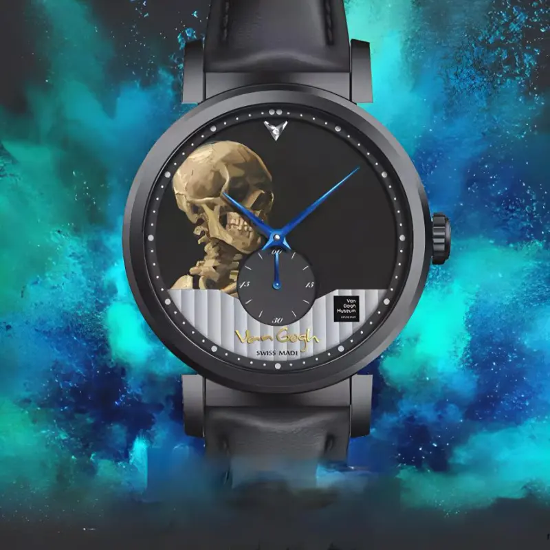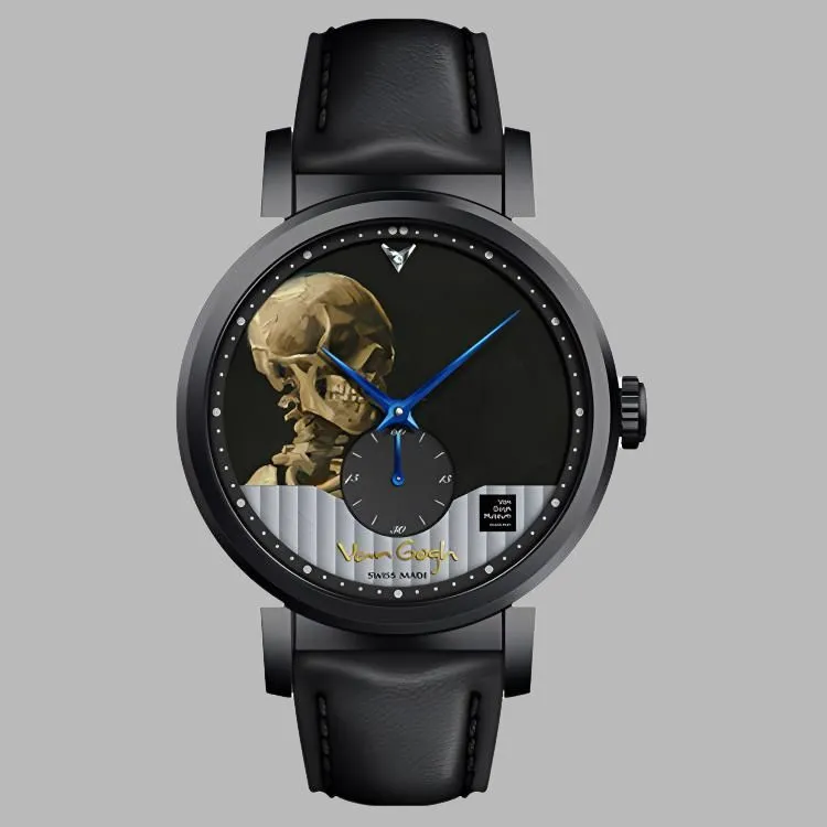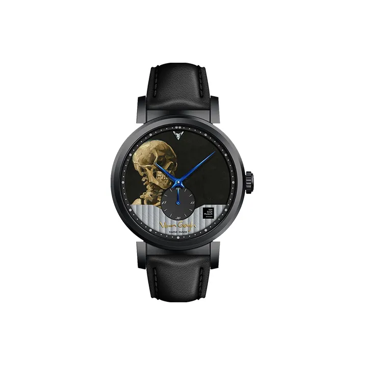 VAN GOGH Женева Коллекция Кварцевые Мужские Часы Естественная Кожа Ремешок Черный Циферблат