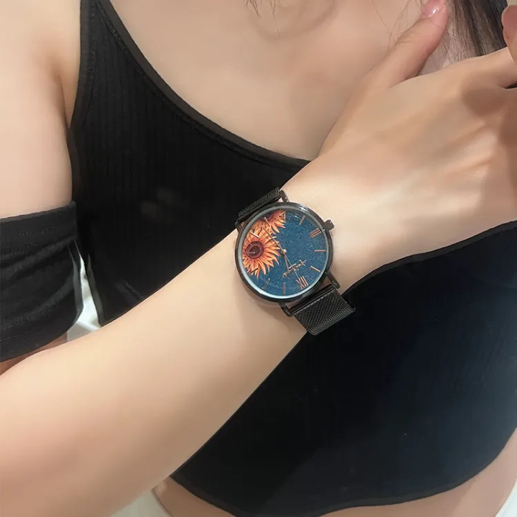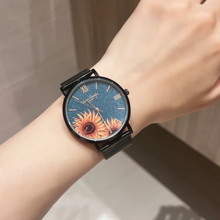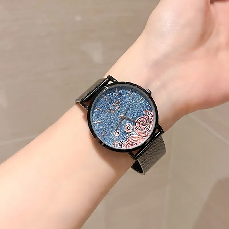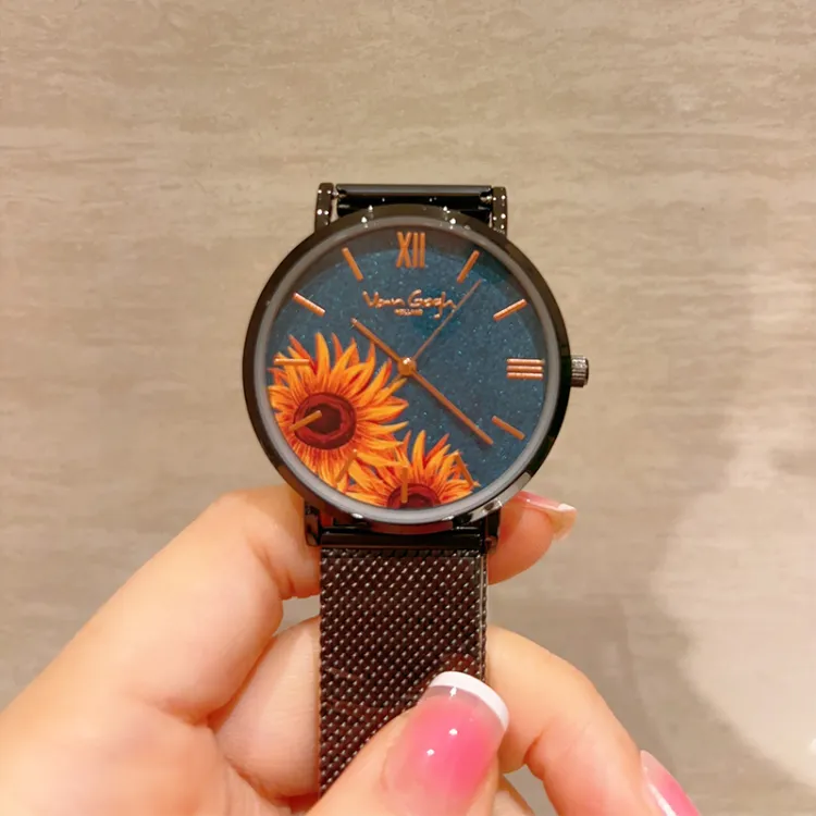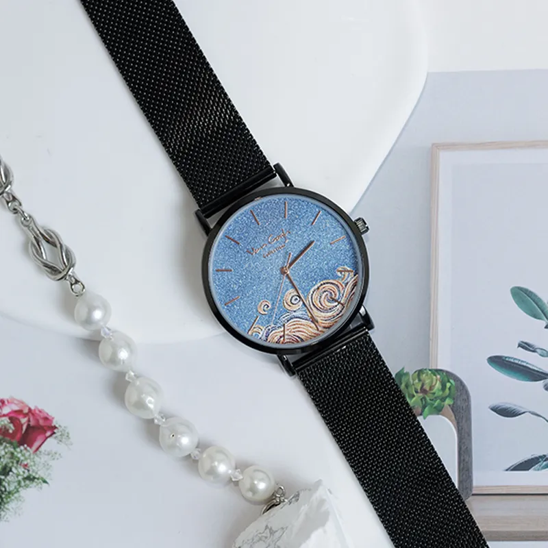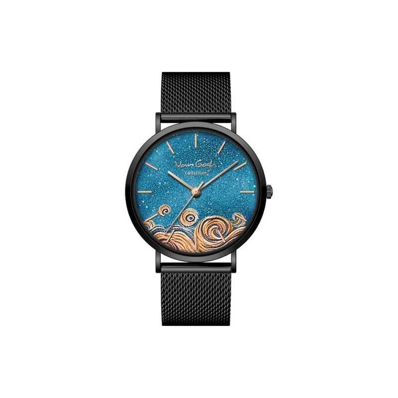 VAN GOGH Starry Night Позолоченные Кварцевые Клетчатые Часы Металлический Ремешок Синий Циферблат
