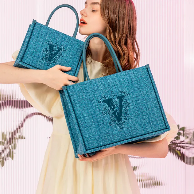VANESSA HOGAN Ткань Тоут Сумка Сумка для покупок Сумка на плечо Большая Женская Синяя