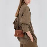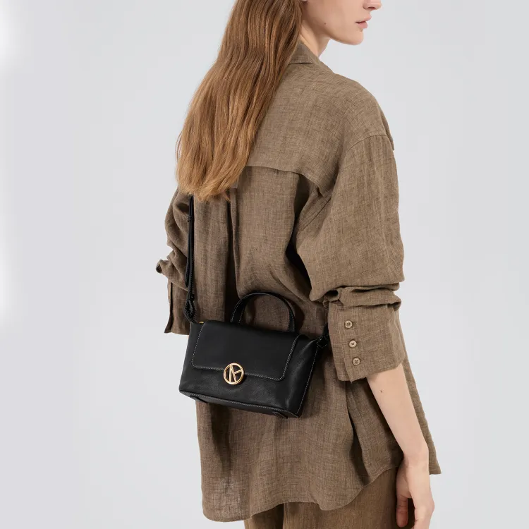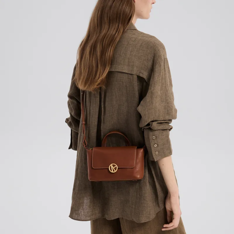 VANESSA HOGAN Сумка через плечо из крупнозернистой текстуры кожа коровы маленькая женская цвет какао-красный коричневый обсидиановый черный