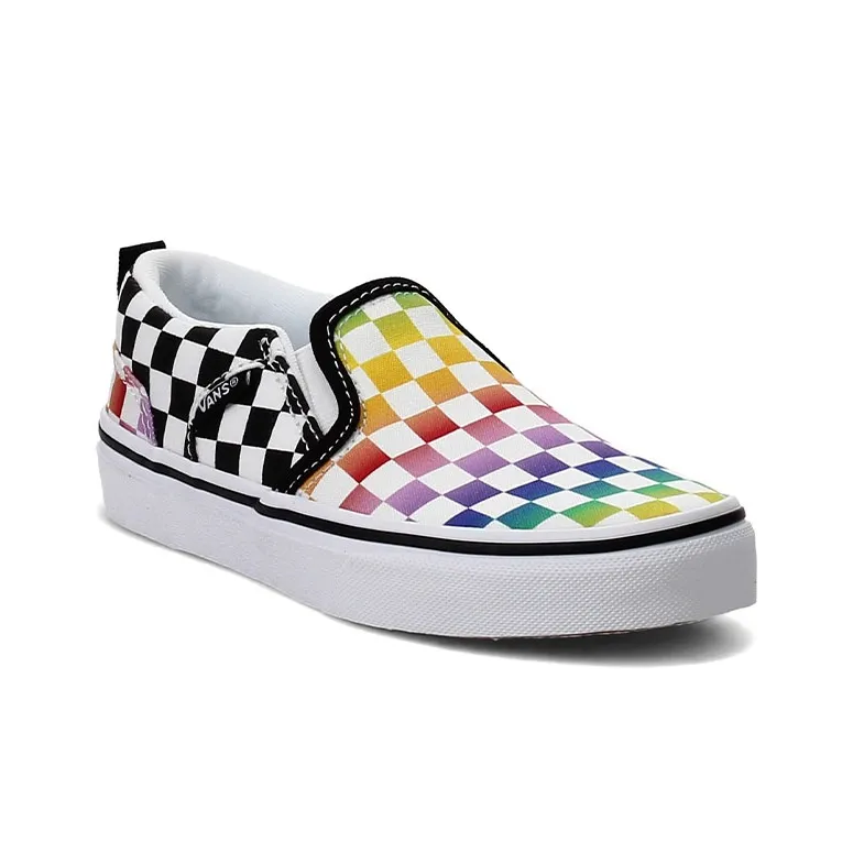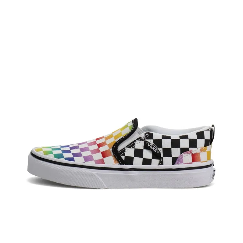 Vans Asher Low Топ Детские Скейтбординги Черный Белый Многоцветный Шахматный узор Подростки