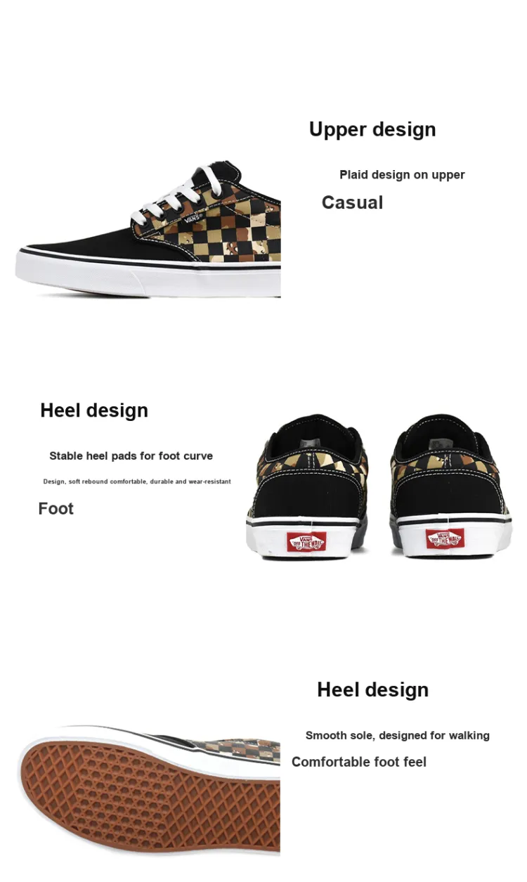 Vans Atwood Low Топ Скейтборд Кроссовки Унисекс Черный Коричневый Шахматный Узор