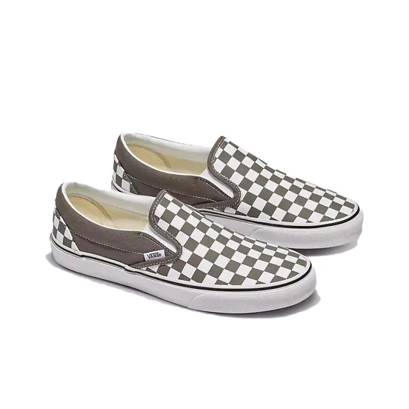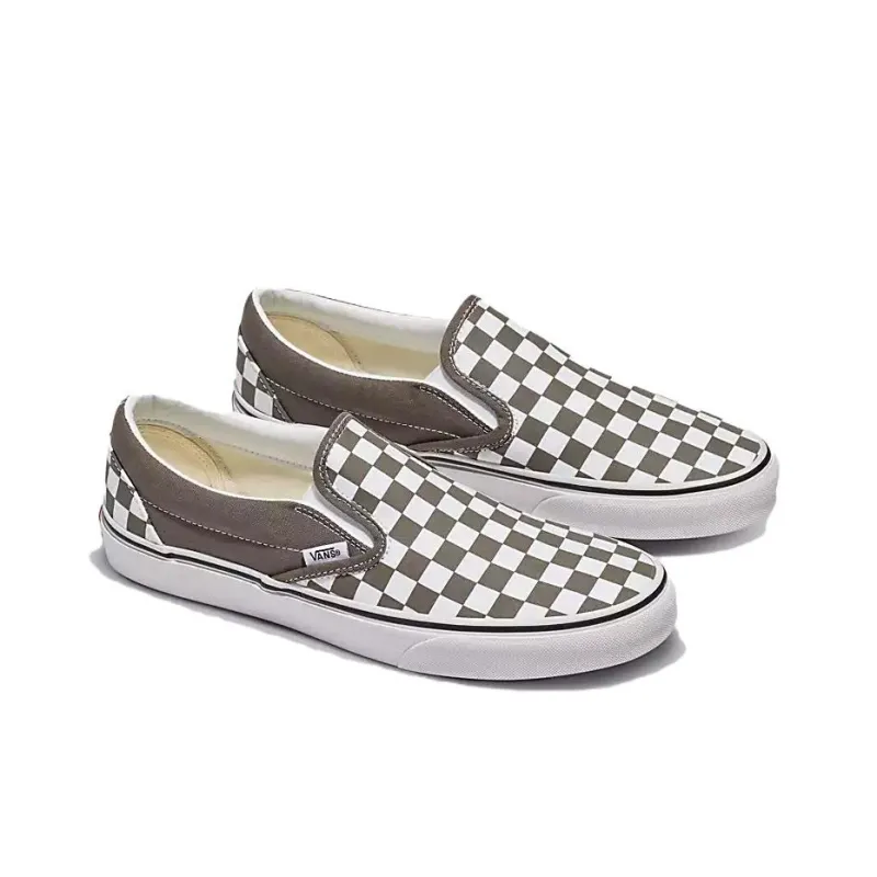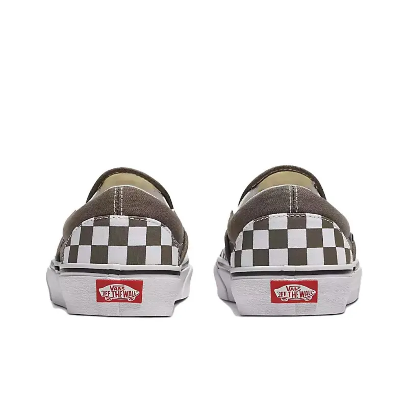Vans Classic Slip-on Шахматный узор Низкие кроссовки для скейтбординга Унисекс Белый-коричневый
