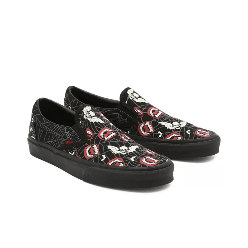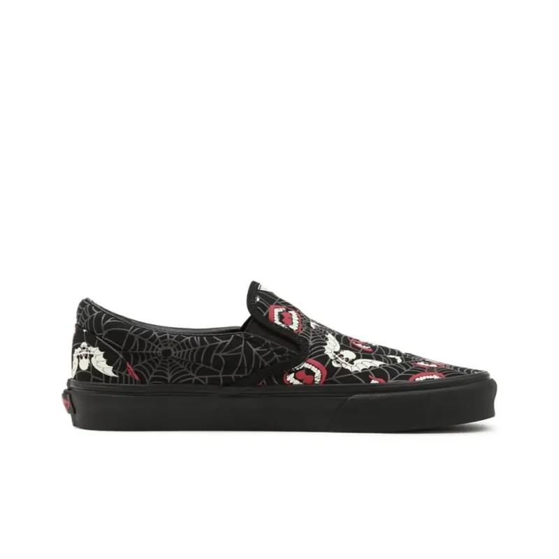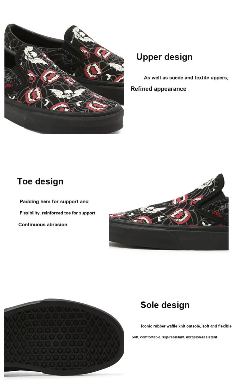 Vans Slip On Свечение Frights Классический Низкий Топ Скейтборд Кроссовки Унисекс Черный Красный Белый