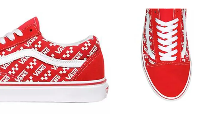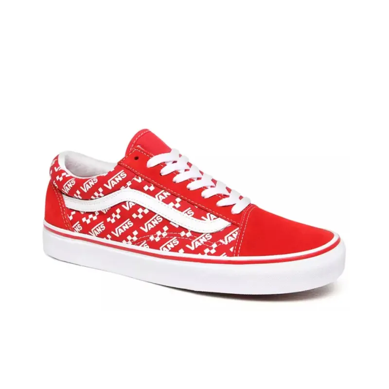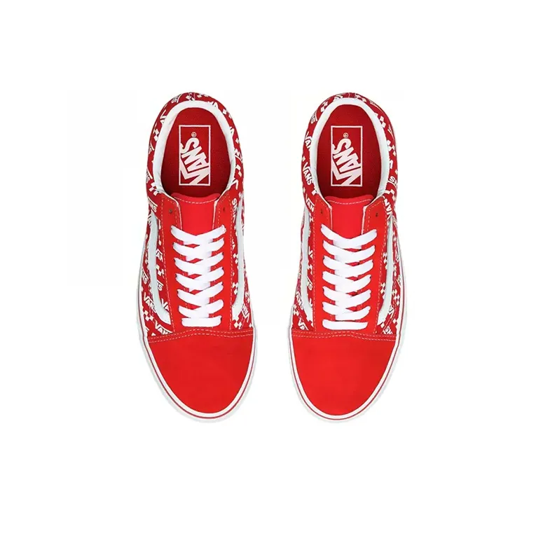 Vans Old Skool Логотип Repeat Легкий Низкий Топ Скейтборд Кроссовки Унисекс Белый Красный