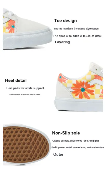 Vans Old Skool Износостойкий и Легкий Низкий Топ Скейтборд Кроссовки Унисекс Белый Желтый Оранжевый
