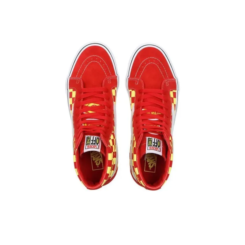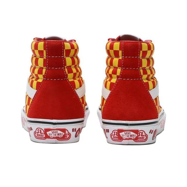 SE BIKES x Vans SK8 Устойчивые к истиранию Дышащие Высокие Кроссовки для скейтбординга Унисекс Красный Белый Шахматный узор