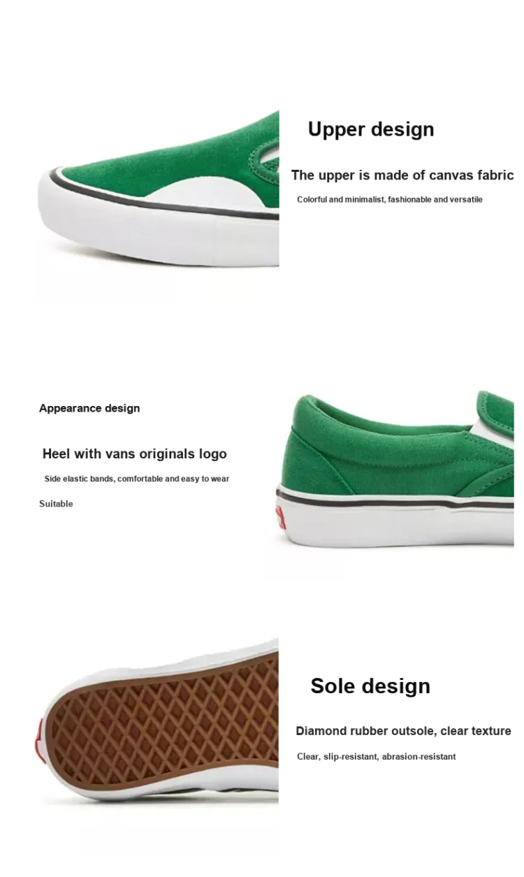 VANS Slip-on Легкий и Износостойкий Низкий Топ Скейтборд Кроссовки Унисекс Зеленый Белый