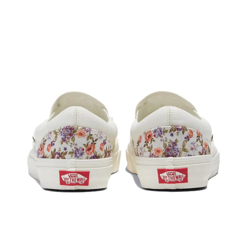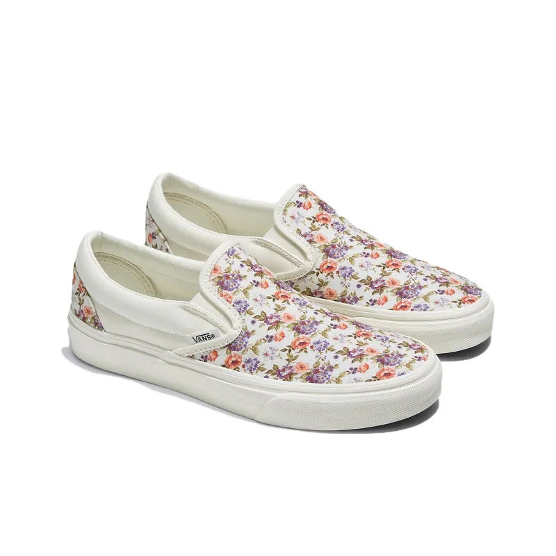Vans Slip On Series Винтаж Цветочный Классический Устойчивый к истиранию Низкий Топ Скейтборд Кроссовки Унисекс Белый Фиолетовый