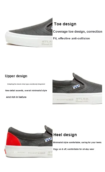 Atlas X Vans Skate Slip-On Low Top Скейтбординг Кроссовки Унисекс Черный Белый Красный