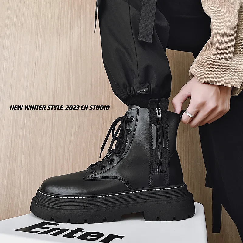 VANSSI Британский стиль Модный тренд Ботинки Мартинс Платформа Увеличение Высоты Челси Мужской