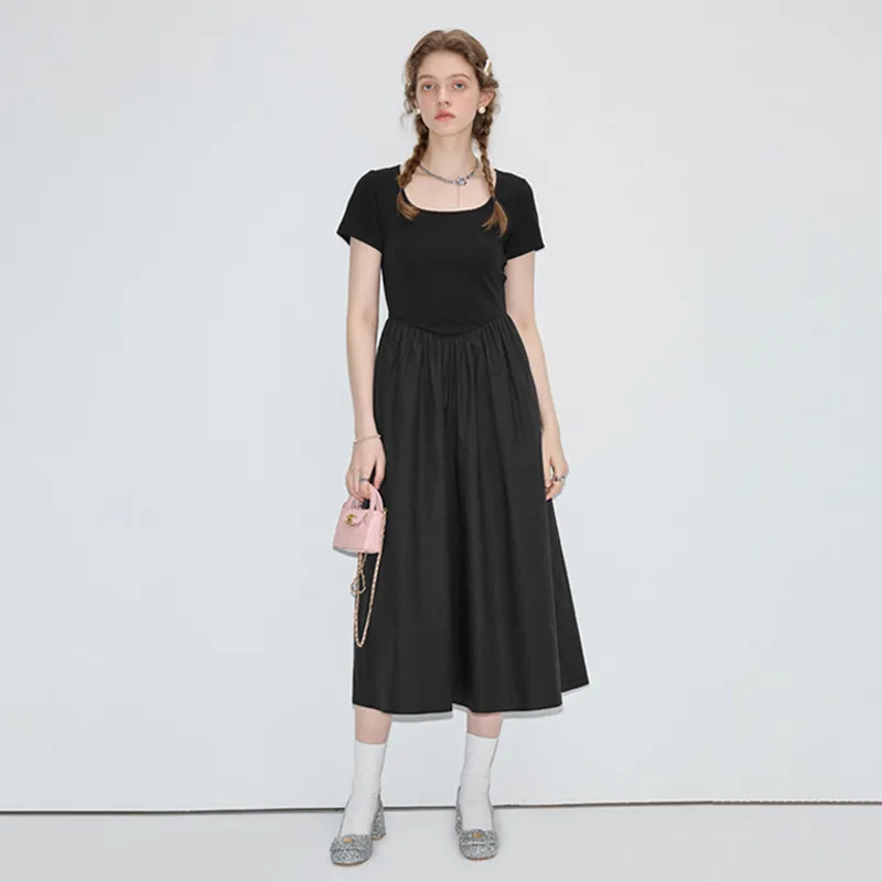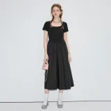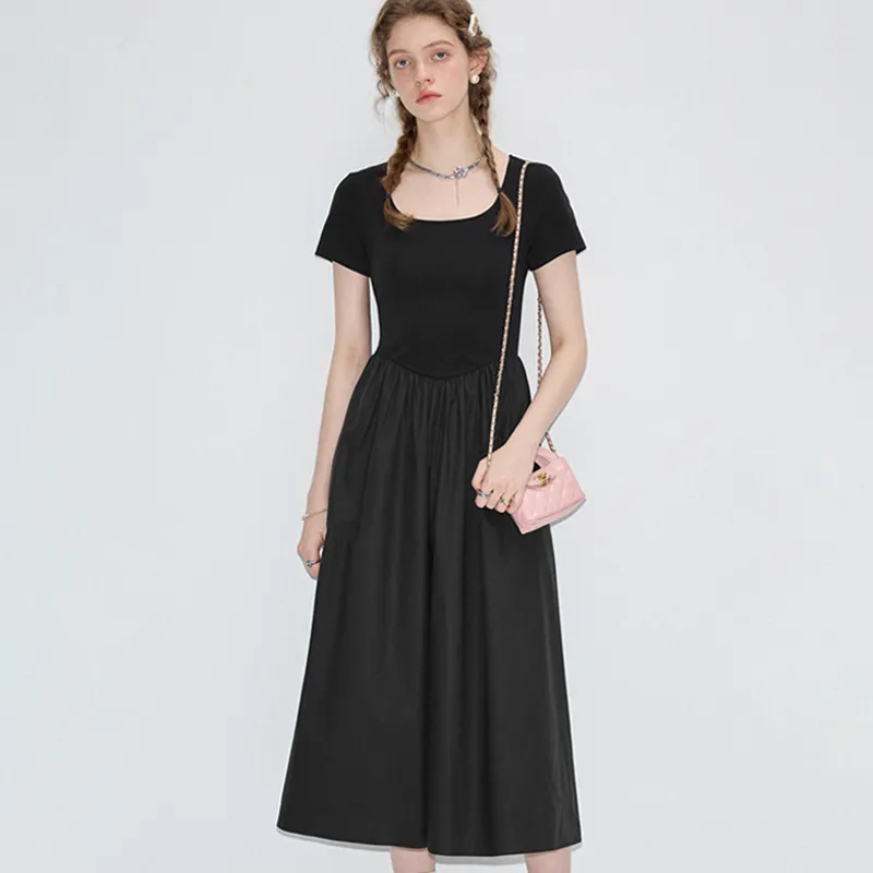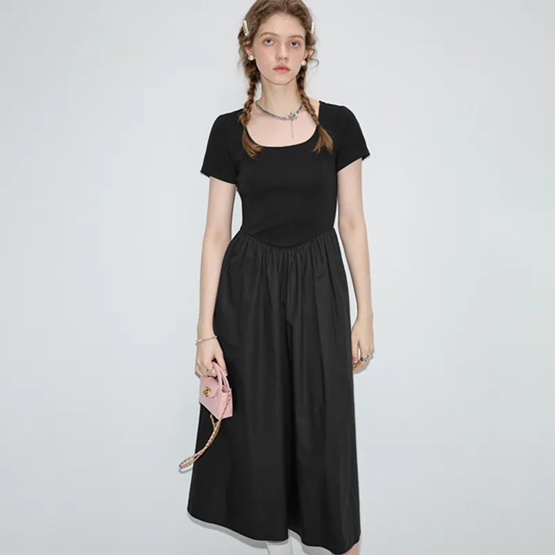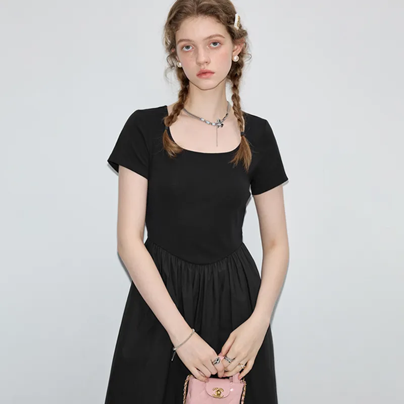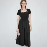 VEGA CHANG Короткий рукав Платье Женское Хепберн Черный