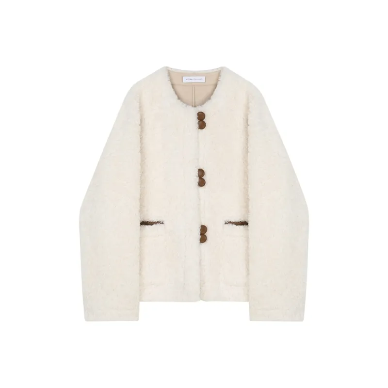 VEGA CHANG SS23 Бархат Feel Пальто Женские Молочный Белый