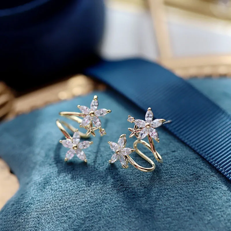 Стиль:Цветочный дизайн, циркон, заколки для ушей