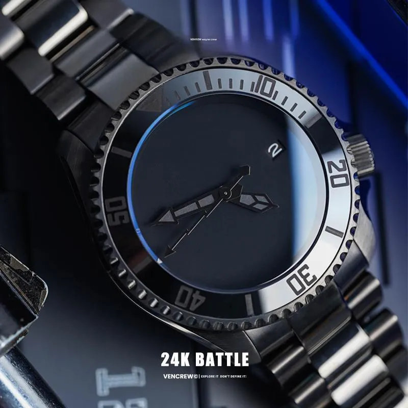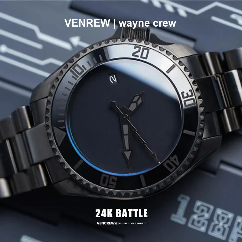 VENCREW 24K BATTLE Автоматический Механический Механизм Часы Унисекс Черный Циферблат