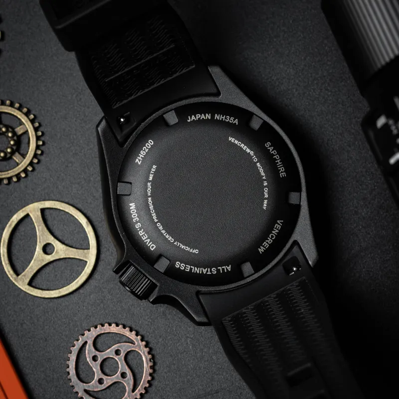 VENCREW Torpedo Апельсин Автоматический Механический Механизм Часы Унисекс Черный Циферблат