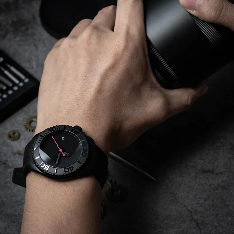 VENCREW Torpedo[Macho Розовый] Автоматический механический механизм Часы Унисекс Черный циферблат
