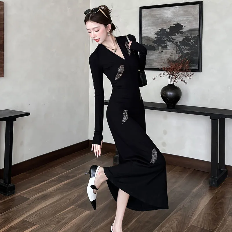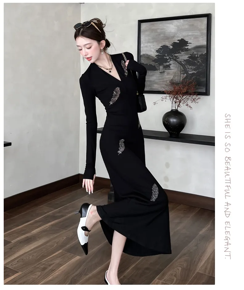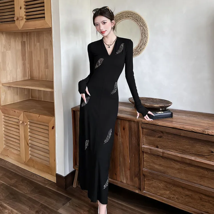 VENICEW Длинное платье с длинными рукавами женское