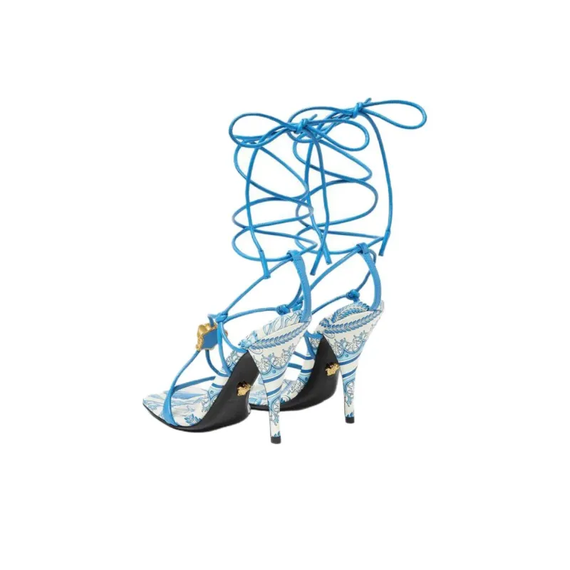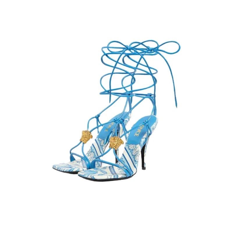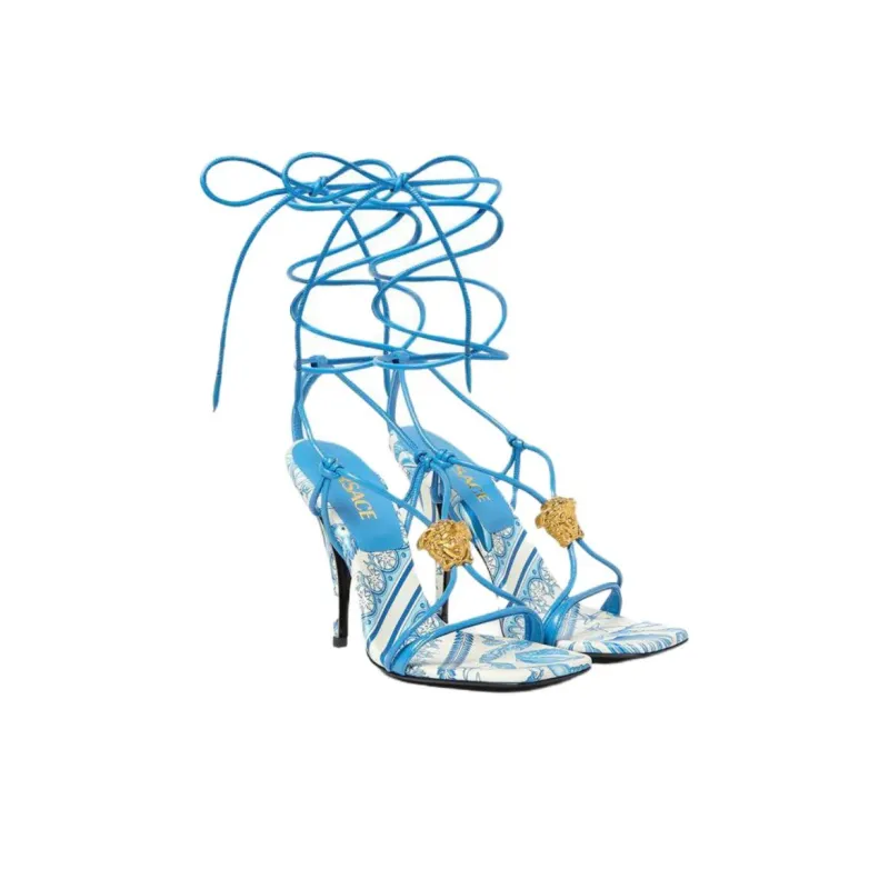 VERSACE Barocco La Medusa One Strap Sandals 11,5cm Women's Blue ВЕРСАЧЕ Барокко Ла Медуза Один Ремешок Сандалии 11,5см Женские Синие