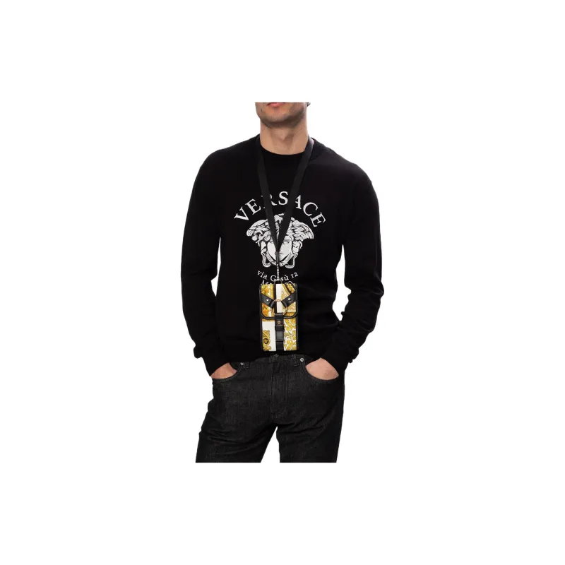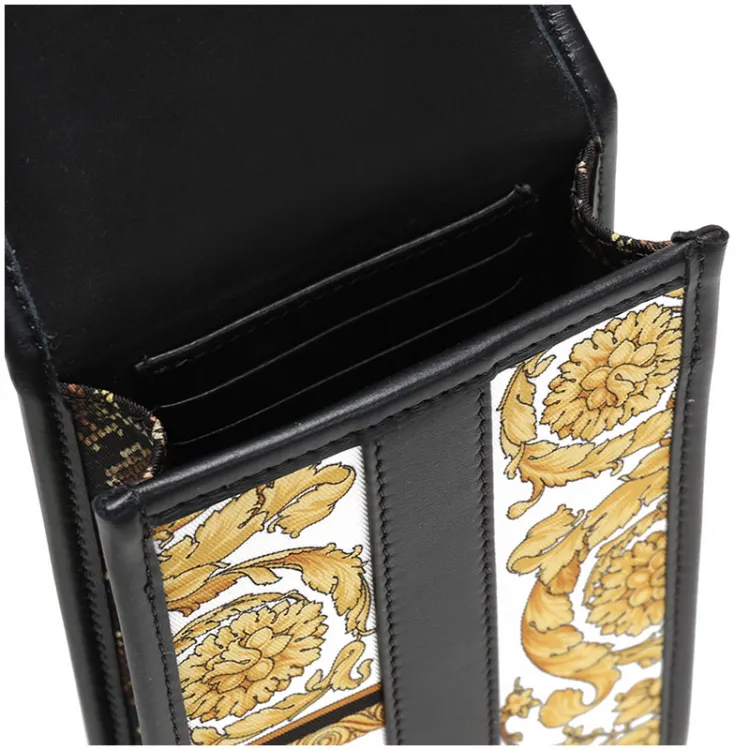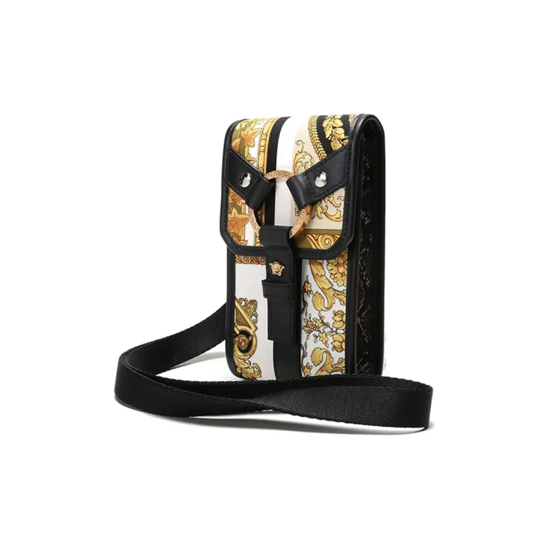 VERSACE Barocco Кожа Сумка через плечо Чехол для мобильного телефона Сумка Обычная Мужская Черная