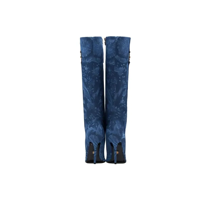 FANSIZHE Barocco Medusa '95 Высокие сапоги до колена 12 см женские синий