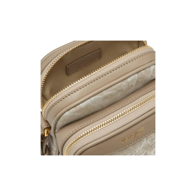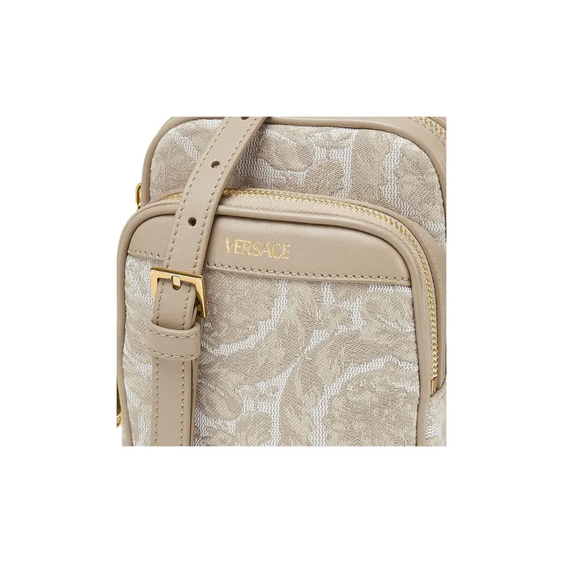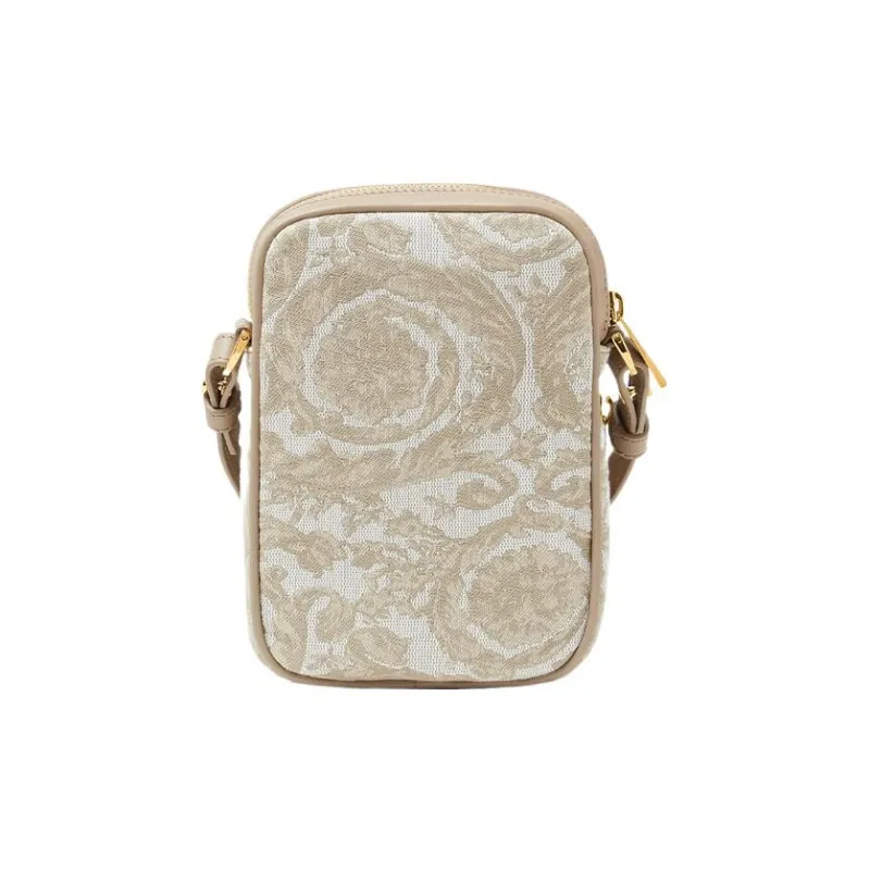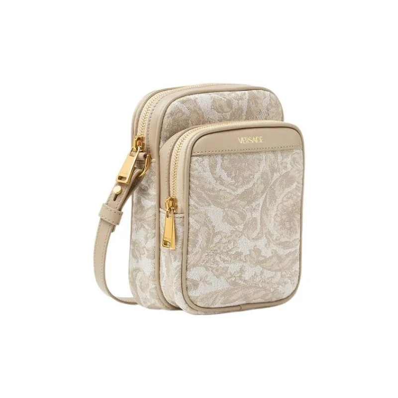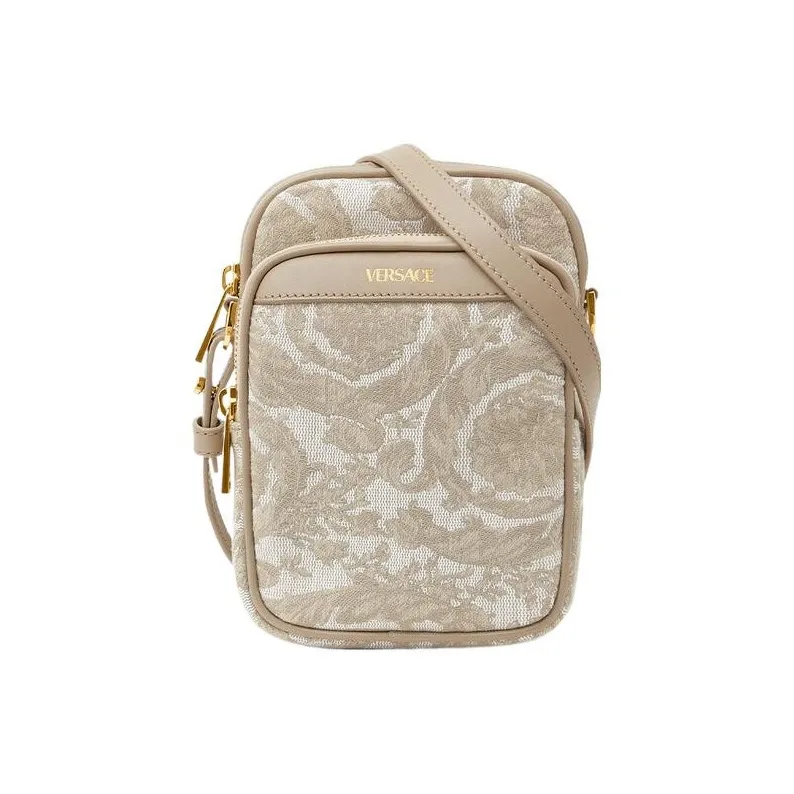 VERSACE Barocco Полиамид с Хлопком Чехол для телефона Сумка через плечо Маленький Мужской Бежевый Лоскутный С принтом