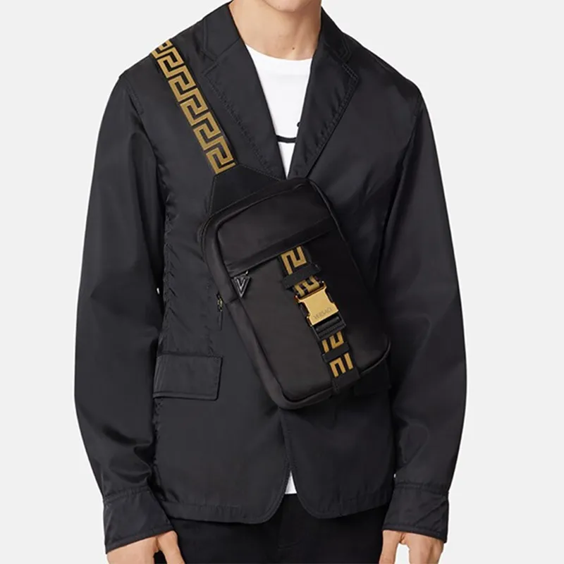 VERSACE Сумка через плечо из коровьей кожи Мужской Черный