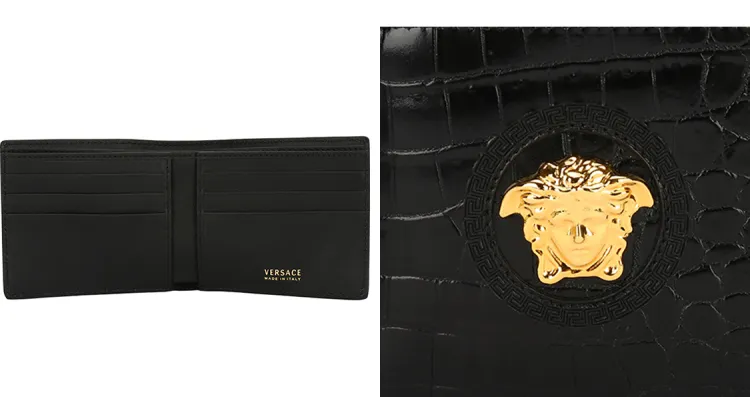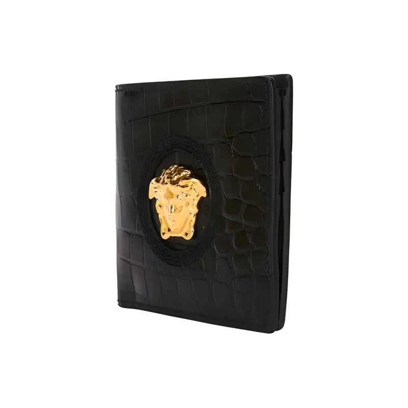 VERSACE Крокодил Кожа Кошелек Мини Мужской Черный