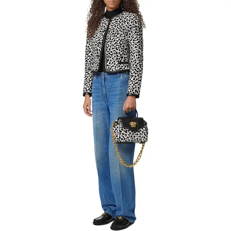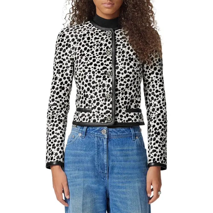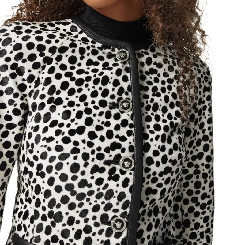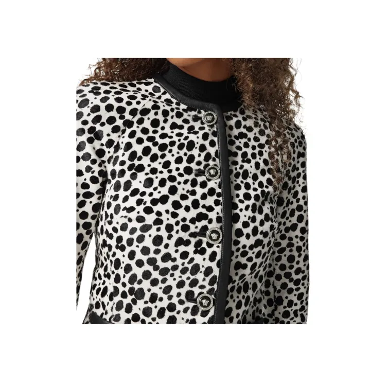 VERSACE FW24 Кожа Куртка Женская Черный Белый