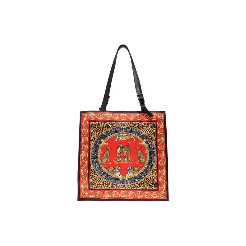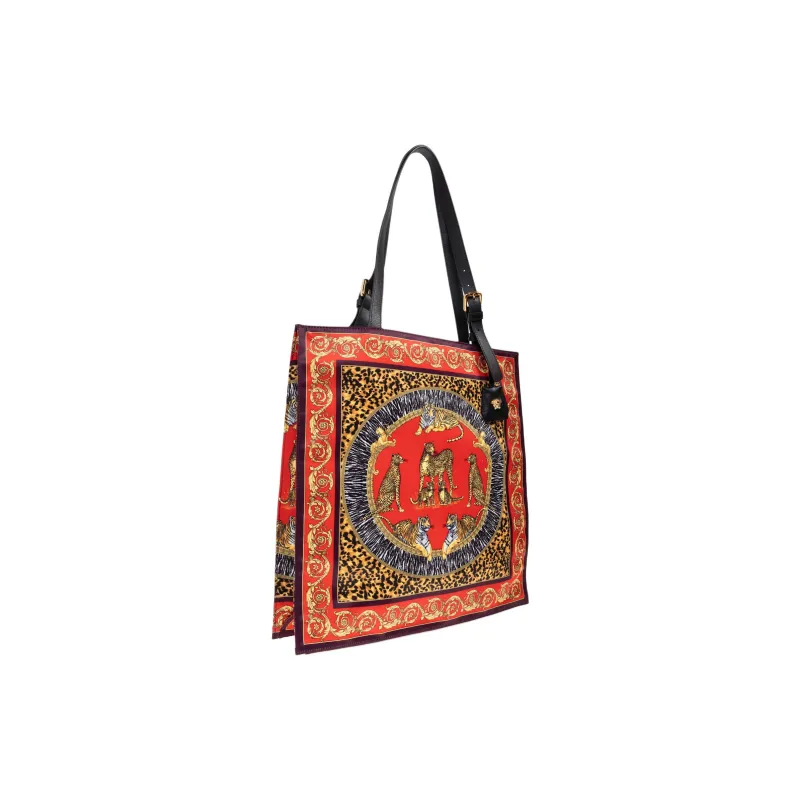 VERSACE Ткань с кожаными вставками Тоут Сумка Сумка для покупок Сумка на плечо Мужская Многоцветная