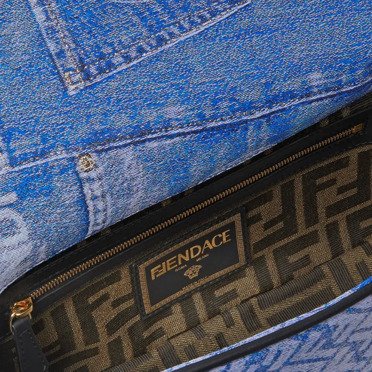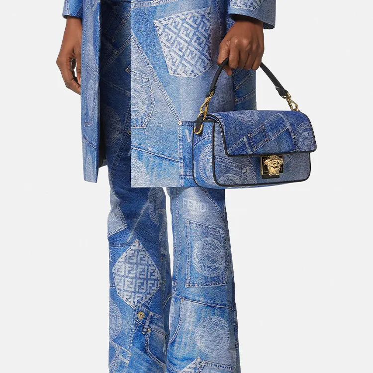 VERSACE FENDI Коллаборация Baguette Полиэстер Сумка через плечо Сумка Женская Синяя