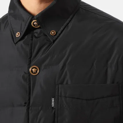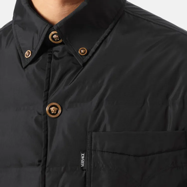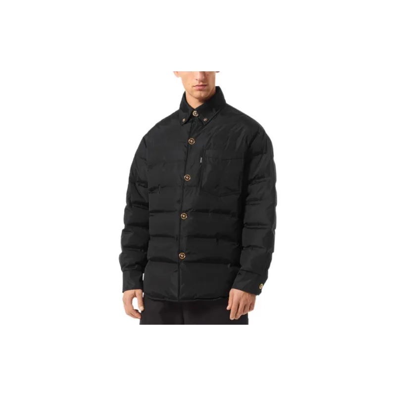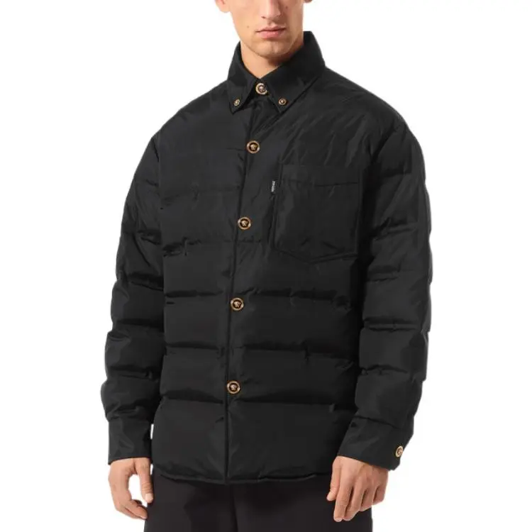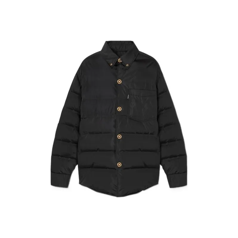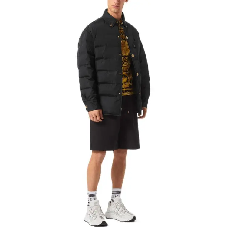 VERSACE FW22 Однотонный Отложной воротник Свободный крой Хлопковый пуховик Мужской Черный