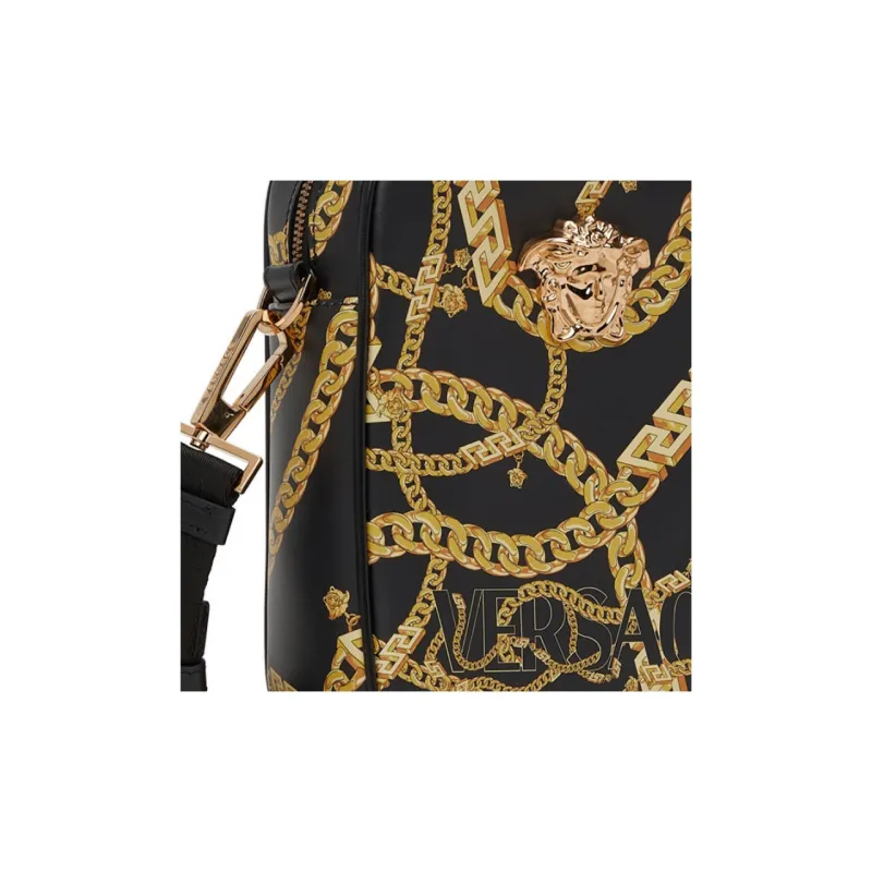 VERSACE Натуральная кожа Сумка через плечо Сумка на плечо Мужская Черный Золотой