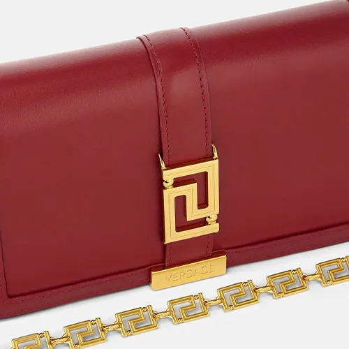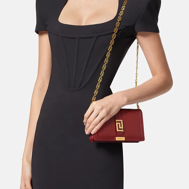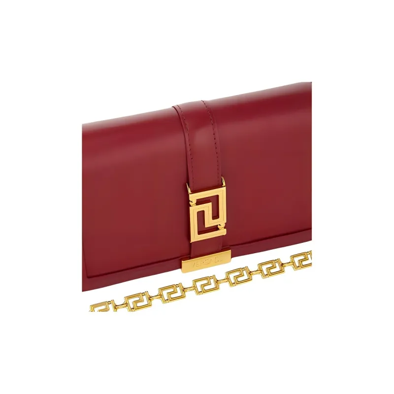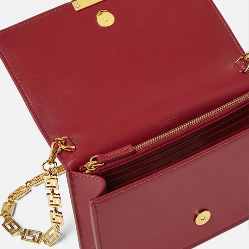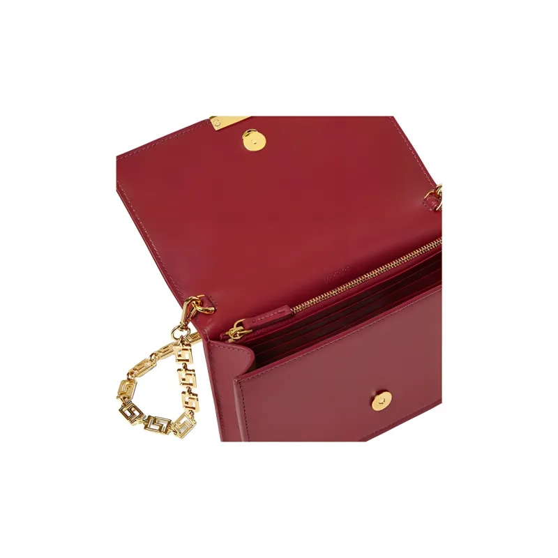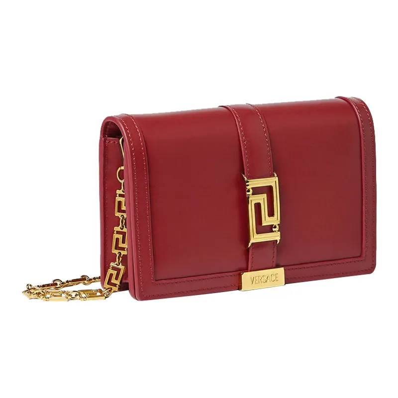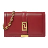 VERSACE Greca Goddess Коровья кожа с овечьей шкурой комбинированный клатч через плечо мини женский красный