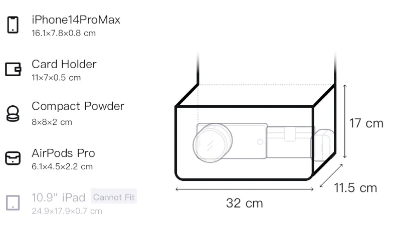 Верхняя одежда Длина: 48,5 см, Низ Длина: 32 см, Тело Ширина: 11,5 см, Тело Длина: 17 см