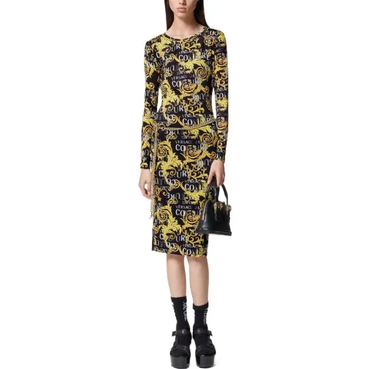 VERSACE JEANS COUTURE SS23 Длинное платье с длинными рукавами женское многоцветное