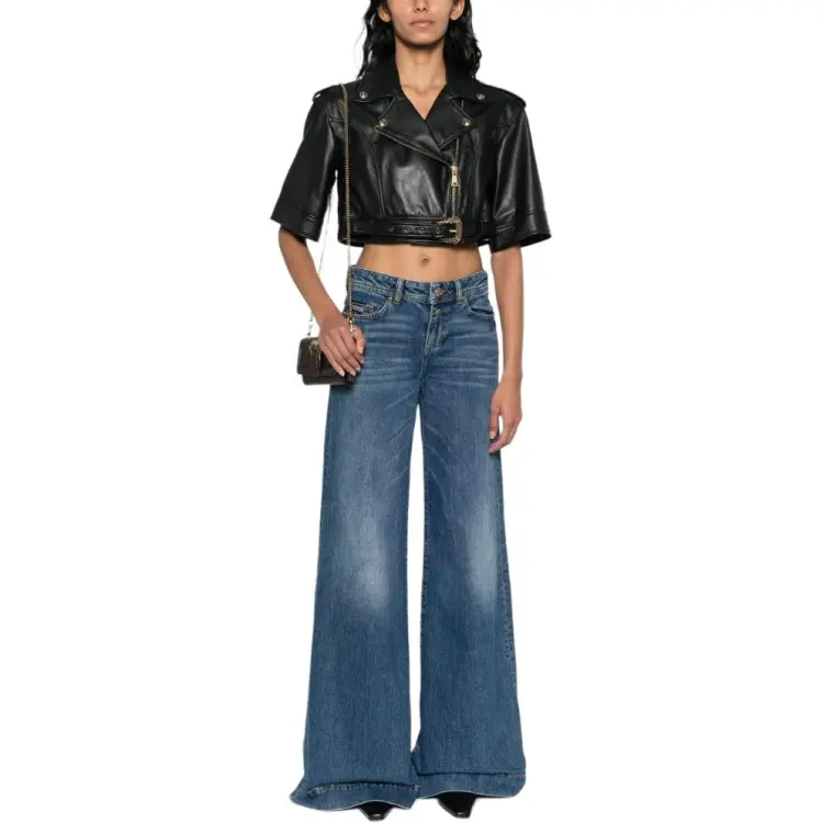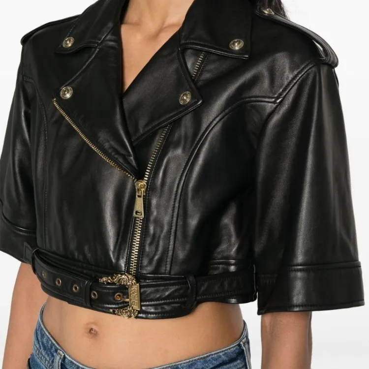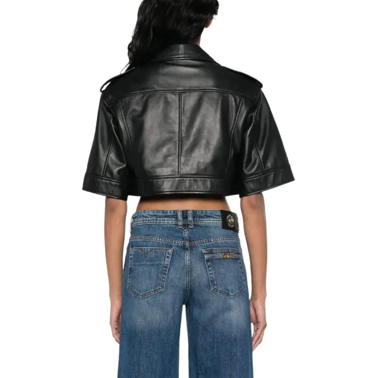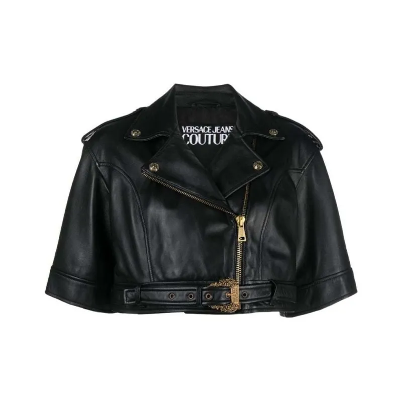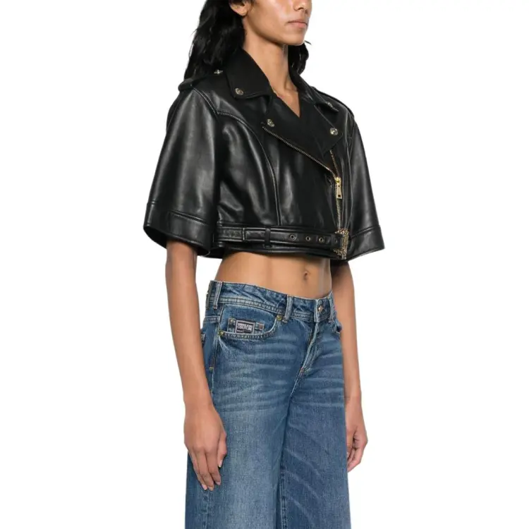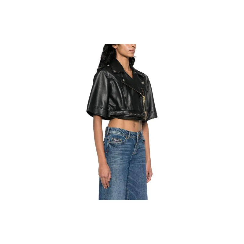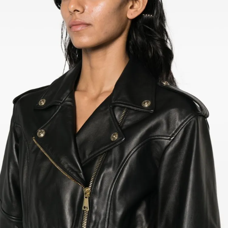 VERSACE JEANS COUTURE SS24 Кожа Куртка Пальто Женские Черный