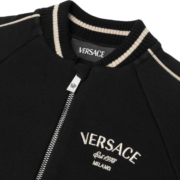 VERSACE FW24 Однотонный Бейсбольный воротник Вышитая буква Длинный рукав Черный Детский