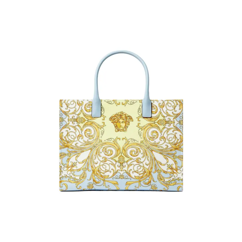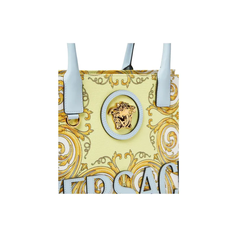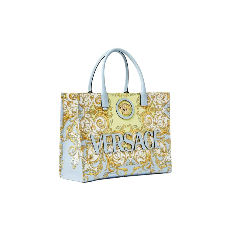 VERSACE La Medusa Холст Сумка Большая Женская Светло-Синяя и Золотая