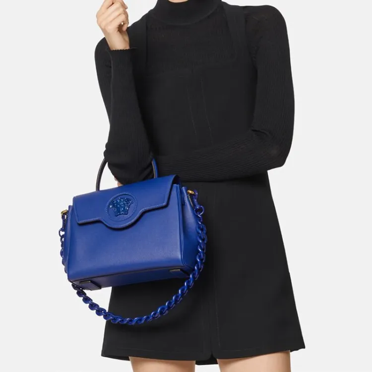 VERSACE La Medusa Сумка через плечо из коровьей кожи маленькая сумка для женщин темно-синий