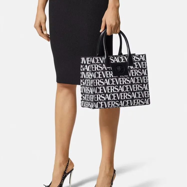 VERSACE La Medusa Хлопок с коровьей кожей Тоут Сумка Сумка для покупок Сумка через плечо Сумка обычная Женская