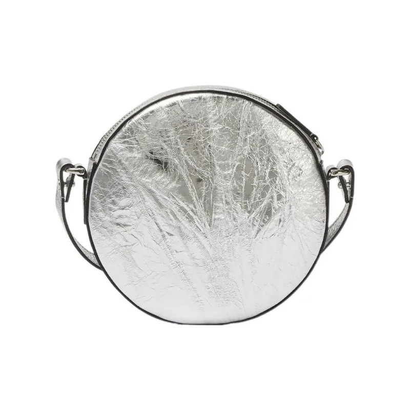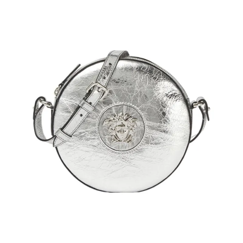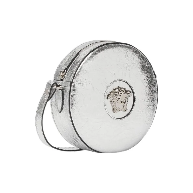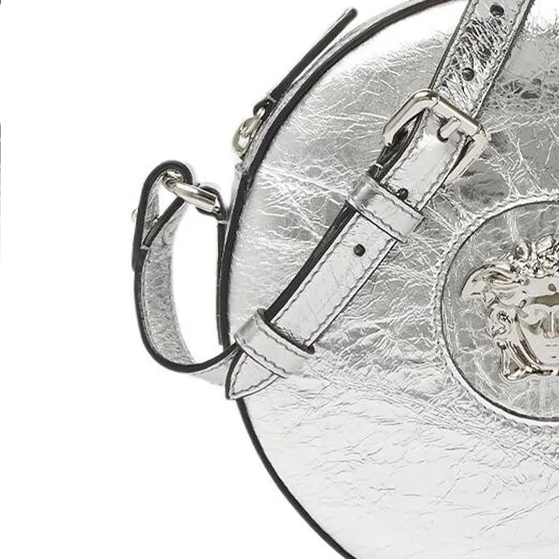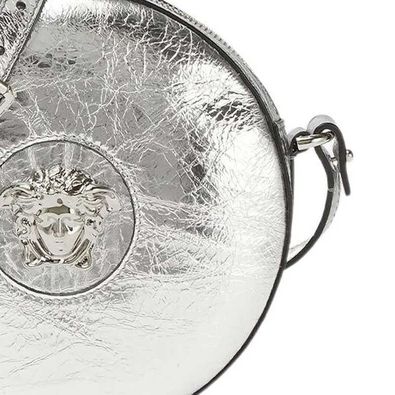 VERSACE La Medusa Кожа Маленькая Круглая Сумка Сумка через плечо Женская Серебряная